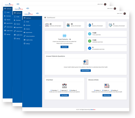 mDaktar brings to you; tracking patient’s appointment history, their prescriptions by you, online consultation dialogue(s), chamber(s)’ details, a safe haven for your article publishing and much more.